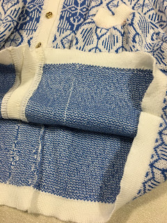3rd Sue knitted a jacquard waistcoat on the passap using 2 strands of each colour